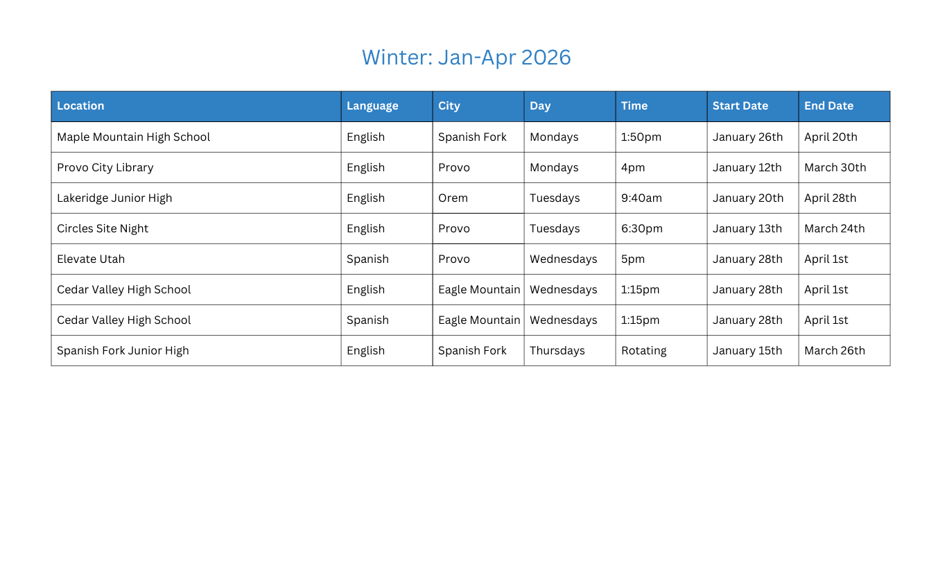 Our youth program is continually enrolling. If this semester is not the best fit for your family, your youth can join another semester. Fill out the registration form, and we will contact you about upcoming class dates and times.